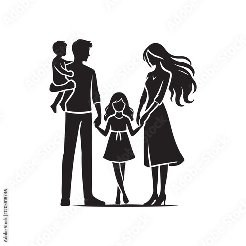 Black Color Family silhouette design Vector Illustration, Solid White Background (9).eps