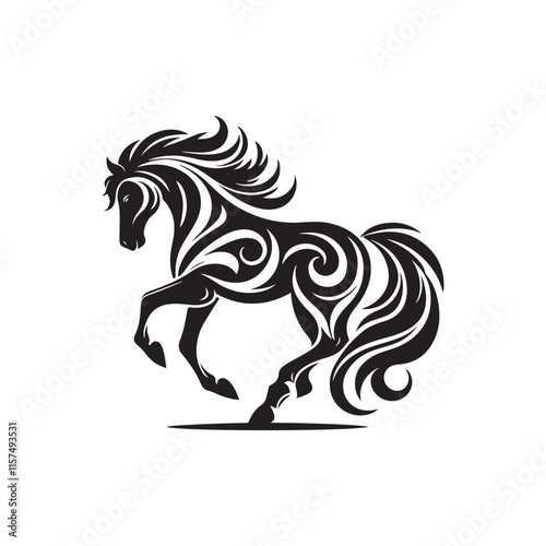 Black Color Horse silhouette design Vector Illustration, Solid White Background 10.eps