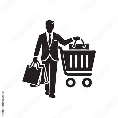 Black Color Shopping mansilhouette design Vector Illustration, Solid White Background 1.eps