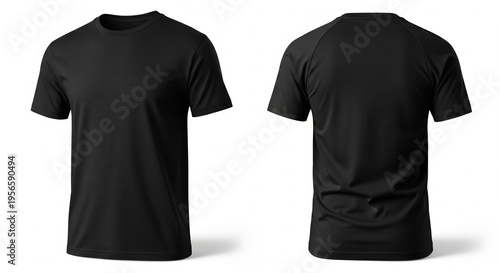 Black crew neck t-shirt mock up front and back views sportswear fashion for print design templates and promotional marketing visuals