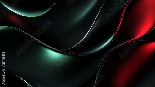 Black dark green abstract background for design Color gradient Wave fluid black red surface with metallic effect spot Neon glow flash shine Template Rough grain noise