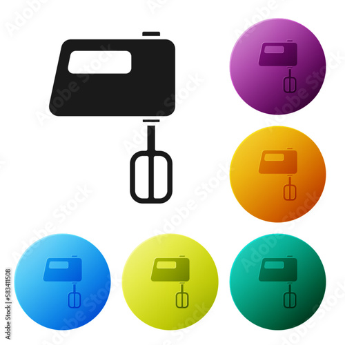 Black Electric mixer icon isolated on white background. Kitchen blender. Set icons in color circle buttons. Vector