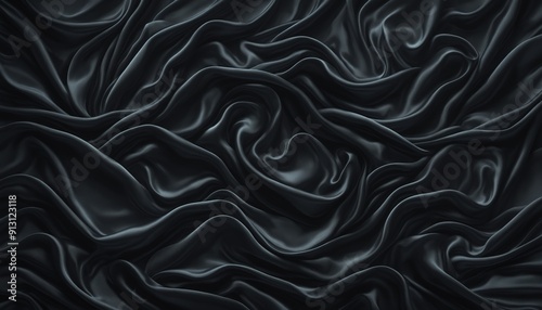 Black fabric draped in a series of smooth, flowing, and wavy patterns, creating a visually appealing abstract design