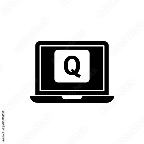 Black Filled Icon of FAQ Laptop Screen with Q Letter
