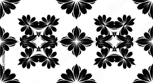floral, pattern, design, black, flower, leaf, botanical, nature, abstract, art, decorative, texture, background, repeat, seamless, style, graphic, illustration, ornament