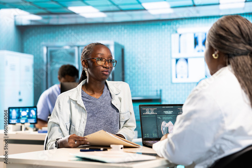 black, general practitioner, patient, health care, diagnostic, therapy, option, clinic, communication, medicals, expertise, female, expert, advice, camera, doctor, consultation, health care, check-up, diagnosis, treatment, medicine, laptop, health, professional, care, stethoscope, office, technology, specialist, exam, analysis, conversation, interaction, advising, physician, test, african american, result, radiology, x-ray, equipment, practice, datum, feedback, information, report, consulting, wellness