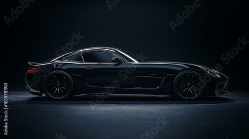 black generic sports car, positioned against a pure black background