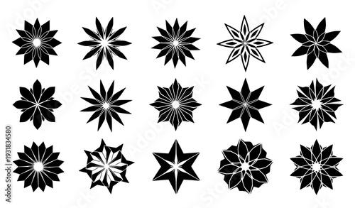 Black geometric flower silhouette vector set – minimal floral design