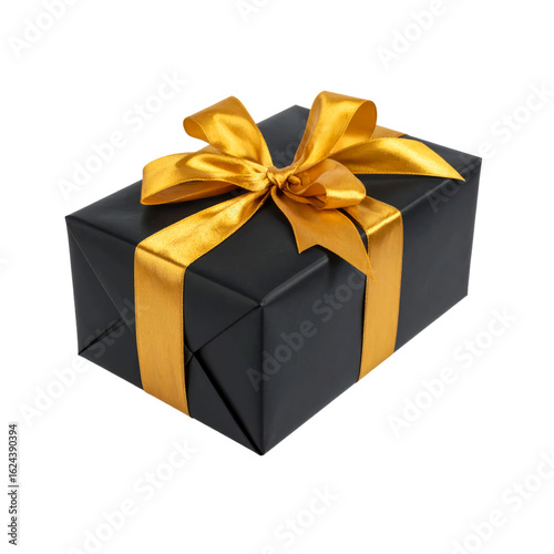 black gift box with golden bow luxury isolated on transparent png
