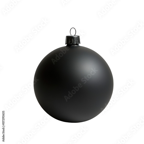 Black glass xmas ball isolated on white background. Christmas bauble ornament for festive holiday decor