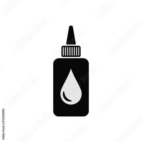 adhesive, liquid, dripped, black, white, icon, symbol, container, dispenser, nozzle, cap, sticky, craft, repair, industrial, tool, object, simple, graphic, illustration, design, element, supply, bonding, fixing, sealing, viscosity, fluid, clear, clean