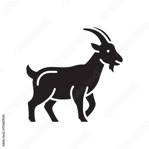 goat, animal, silhouette, black, white, mammal, farm, farm animal, wild, horn, beard, standing, nature, graphic, design, symbol, icon, illustration, simple, minimalist, isolated, creature, domestic, mountain, caprine, bovid, hoofed, rural, agriculture, fauna, emblem, outline, shape, profile, side, herbivore, animal kingdom, drawing, art, contrast, sleek, clean, elegant, walking, farmyard, ranch, pasture, wilderness