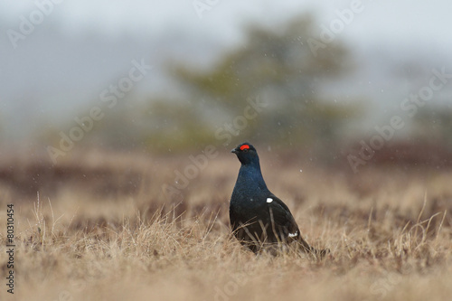 Black grouse in the snowfall