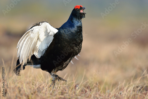 Black grouse jumping