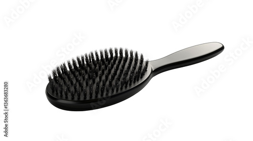 hairbrush, brush, black, silver, handle, bristle, isolated, hair care, beauty, hygiene, grooming, accessory, product, cut-out, object, equipment, style, personal, care, domestic