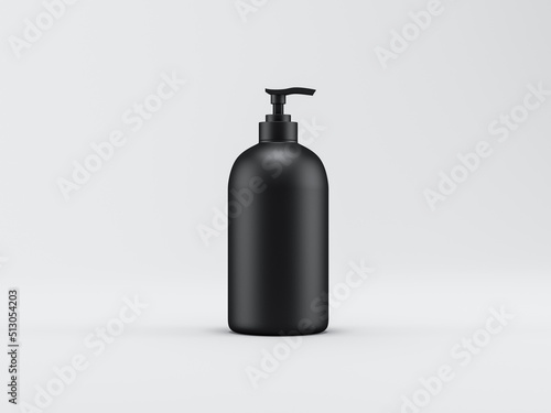Black Hand sanitizer Pump Bottle mockup, soap template packaging on gray background, 3d rendering