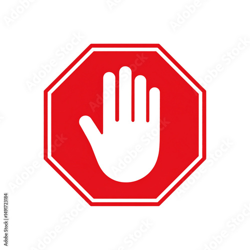 Black hand symbol centered in a red octagonal sign, indicating a warning or stop command.