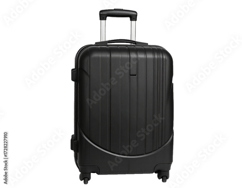 Black Hardshell Suitcase with Retractable Handle Isolated on White Background