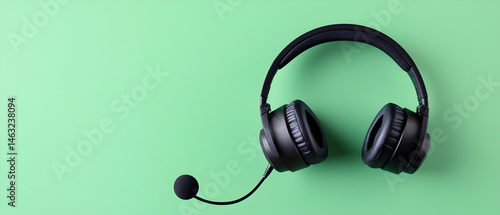 earphones, microphone, black, green, background, technology, communication, audio, listening, music, device, equipment, wired, modern, studio, isolated, topview, professional, business, gaming, support, headset, sound, portable, electronic, accessory, audiophile, digital, noise