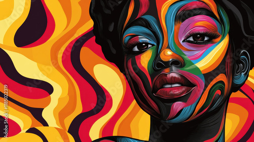 poster, woman, vibrant, colourful, artistic, cultural, heritage, celebration, bold, creative, vivid colors, empowerment, pride, resilience, awareness, modern, design