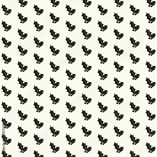 Black Holly Leaf Pattern – Cream Background Holiday Vector