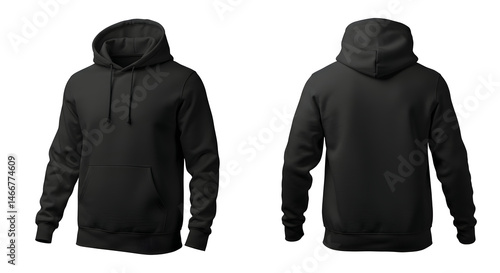 Black Hoodie Front And Back View Isolated On White Background Simple Design Apparel