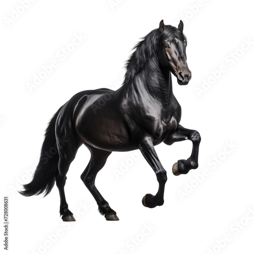 Black horse running. Majestic Stallion: Black Horse in epic Pose isolated on transparent and white background. Ideal for use in advertising. Generative ai