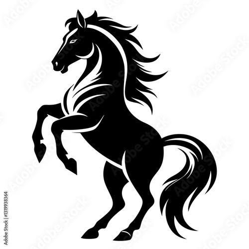 Black Horse Silhouette 16 - Vector Illustration, Cartoon, Clipart & Line Art Design, Black horse silhouette vector illustration, perfect for clipart, cartoons, and line art digital designs.