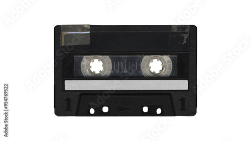 black Isolated music cassette tape with clear place for cover, front side, y2k retro style