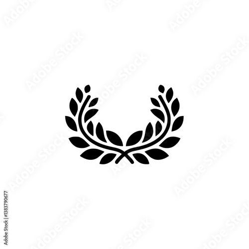 Black Laurel Wreath Icon on White: Minimalist Victory Concept