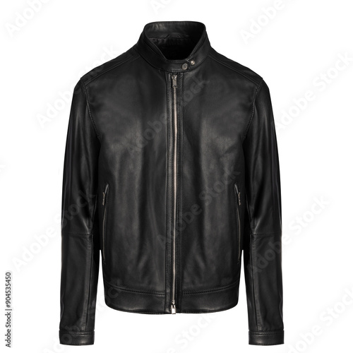 front view, zip, clothing, fashion, apparel, outerwear, leather, jacket, black, style, garment, men's fashion, classic, modern, sleek, design, casual attire, trendy, wearable, isolated, clothes rack, elegant, chic, coat, stylish