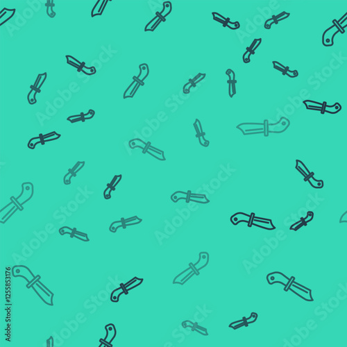 Black line Military knife icon isolated seamless pattern on green background. Vector