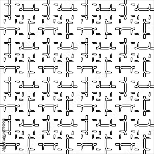 Black lines on white background. Wallpaper with figures from lines. Abstract geometric black and white pattern for web page, textures, card, poster, fabric, textile. Monochrome design.