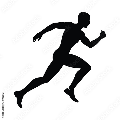 Black Male Running Silhouette, Athletic Man Running Silhouette, Fitness Runner Silhouette Male, Sporty Black Runner Silhouette, Jogging Man Silhouette