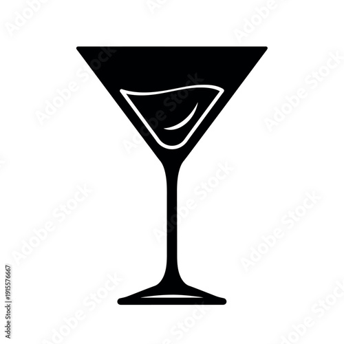 Black martini glass icon on for cocktail or drink design