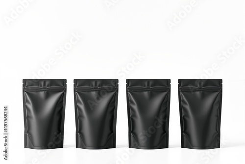Black matte stand-up pouch mockup on bright background.