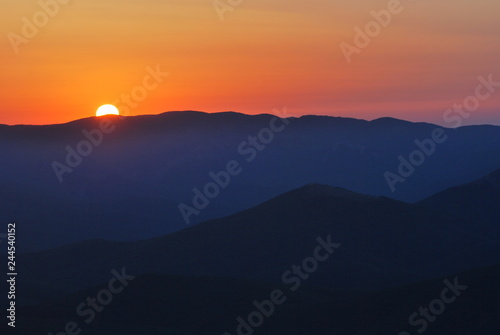 sunset, mountain, sky, sunrise, sun, landscape, nature, mountain, fog, cloud, cloud, hill, morning, orange, evening, dawn, sunlight, blue, dusk, mist, silhouette, light, hill, view, summer, beautiful, travel, background, scene, colours, beauty, natural, park
