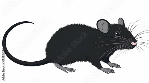 rodent, mammal, animal, illustration, cartoon, cute, funny, pet, domestic, wild, nature, wildlife, isolated, white background, vector, graphic, design, artwork, art, drawing, vignetting, symbol, icon, character, mascot, pest, vermin, tail, whisker, ear, eye, nose, paw, claw, fur, hair, black-and-white, greyscale, monochrome, simple, minimalist