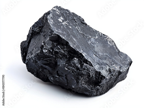 Black Obsidian Stone on White Background for Natural Texture Display