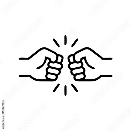 Black outline icon of two fists bumping, symbolizing friendship, unity, or support.