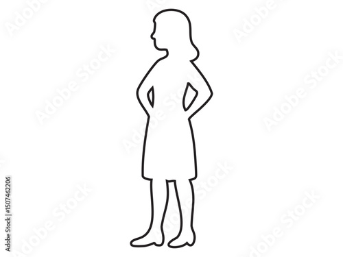 woman, outline, standing, vector, icon, black, figure, illustration, logotype, female, silhouette, white, background, design, art, graphic, style, simple, contour, posture, vignetting, minimal, shape, concept, drawing, isolated, modern, elegant, monochrome, form, aesthetic, clean, line, composed, poised, symbol, character, hand, hip, white background, print, element