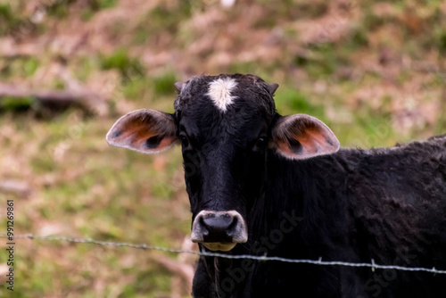 black, ox, calf, looking, portrait, little, ox, young, bull, summer, beautiful, mammal, nature, countryside, field, rural, farm, animal