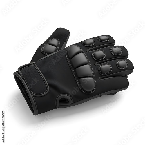 Black padded motorcycle gloves with white stitching on a white background black gloves padded gloves