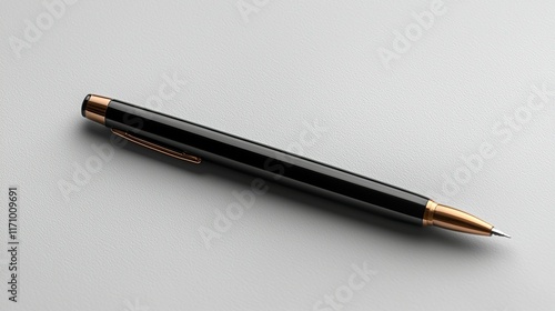 Black pen with gold tip on white background, ready to write.