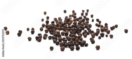 Black pepper grains isolated on white background