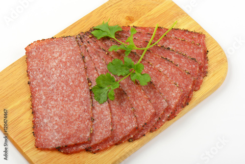 Black pepper salami slices