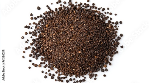 Black Peppercorns and Ground Pepper Spice Isolated on White Background