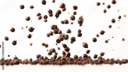 peppercorn, pepper, spice, food, ingredient, cooking, culinary, black, brown, texture, background, white, isolated, falling, scattered, grain, seasoning, favor, photo, studio, image, still life, macro, closeup, high key, lighting, dark, organic, natural, design, commercial, food photography, receipe, website