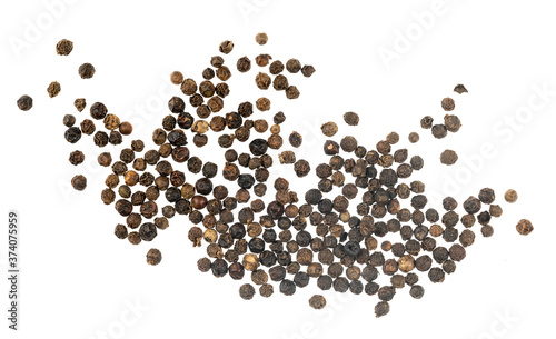 Black peppercorns isolated on white background
