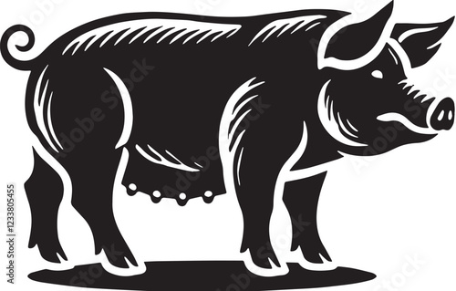 Black Pig Silhouette Vector, High Quality Illustration on White Background
